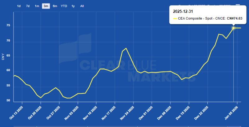 - New Price Mechanics: As of January 5th, the official "composite price" for the market is solely tracking the CEA-2025 vintage. While older vintages are still tradable, they no longer have any influence on the composite index, as their weighting has been set to zero.